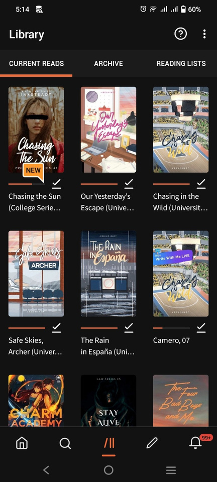 This is my wattpad library. I love reading thriller and love stories whenever I'm bored.